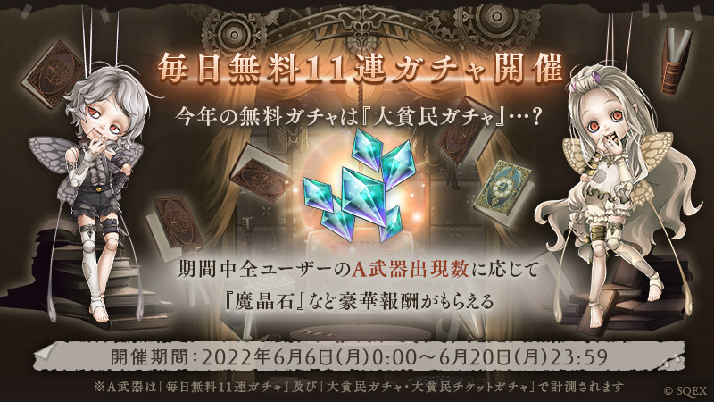 ・無料ガチャチケット11連分